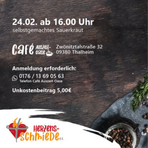 jeweils ab 15.30 Uhr in der Herzens-Schmiede ( Café AusZeit-Oase)